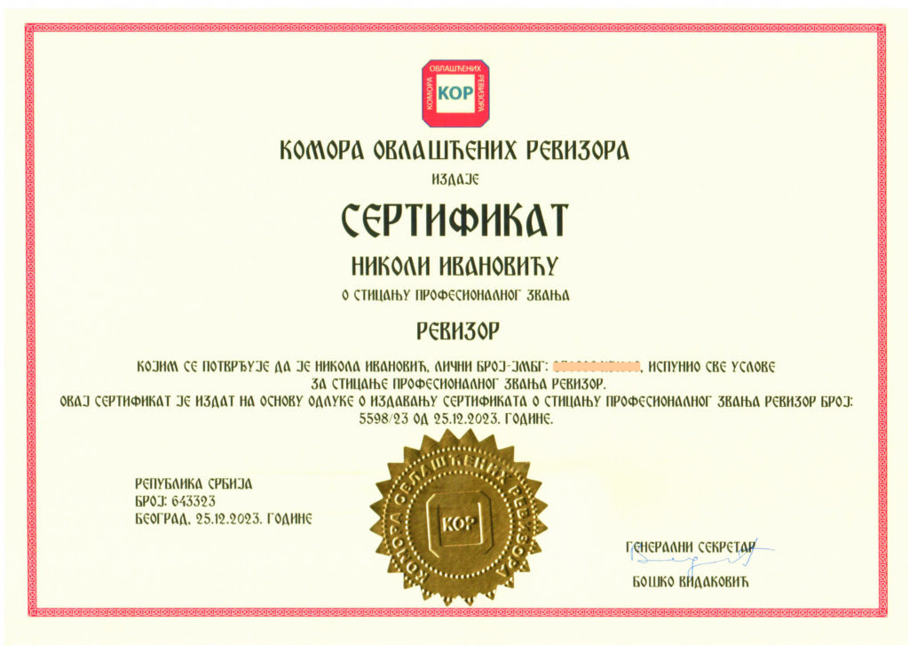 Naš tim sastoji se od stučnih ljudi koji se neprestano usavršavaju u svom obrazovanju, veštini i prilagođavaju stalnim tehnološkim promenama. Većina naših zaposlenih i saradnika poseduje diplome Ekonomskog fakulteta, sertifikate iz oblasti računovodstva i revizije kao i višegodišnje iskustvo u računovodstvenim i konsalting poslovima, čime doprinose da pružene usluge budu profesionalne, pouzdane i ažurne. Naši stručnjaci kontinuirano prate promene zakona i propisa, što omogućava da za svako vaše pitanje pronađemo adekvatan odgovor i obezbedimo kvalitetno poresko, finansijsko i poslovno savetovanje.
